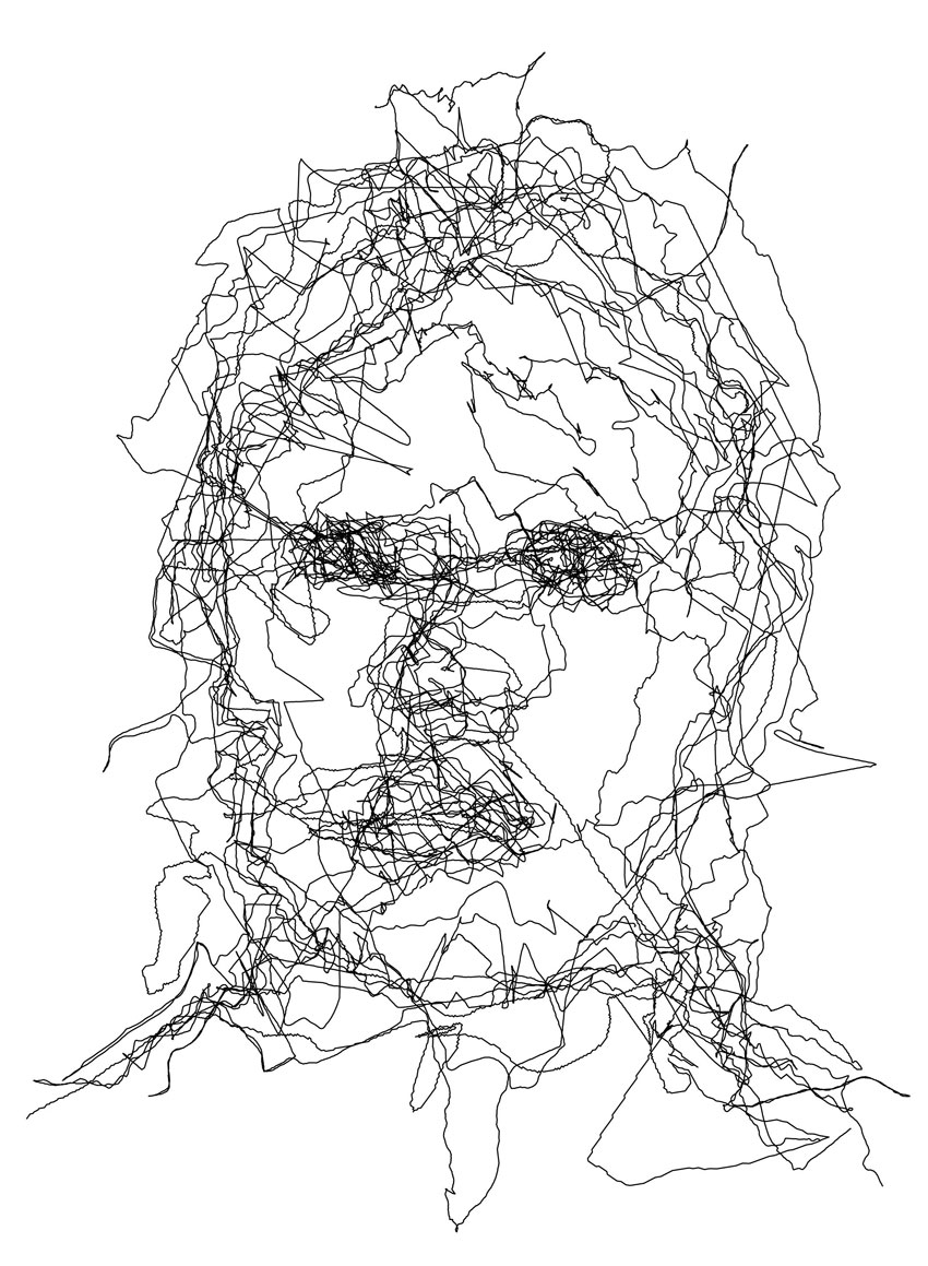 For the project “THREE STONES” (2004) Antti dug a hole and collected the stones he found after seven minutes of digging, seven hours and seven days. For “WALK THE LINE” (2005-ongoing) the artist printed his portrait on various maps and then walked along the lines of his face. The GPS system he carries along the way records his journey, drawing the path he walked. Laitinen performed this project in Helsinki, Kuopio, Jyväskylä, Luukkaa and Oulunkylä Forests (Finland), Kielder Forest, Newcastle, Pontburn Woods (UK), Warsaw, Krakow (Poland) and Athens (Greece) and Madrid (Spain).