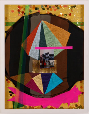 ![]() Yudi Noor Akhenaton, 2010 Ornamental glass, sand paper, tape, cell phone stickers, spray paint and frame 42 x 32 x 5 cm |