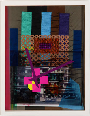 ![]() Yudi Noor Rice Field in Roaming, 2010 Embroidery on fabric, ornamental brass, inkjet print on transparent paper, photographic print, sand paper, adhesive tape, cardboard, cell phone sticker on glass, frame 42 x 32 x 5 cm |