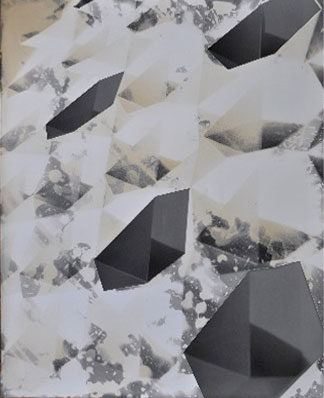 ![]() Yudi Noor Jerusalem II, 2010 Ornamental glass, sand paper, tape, cell phone stickers, spray paint and frame 42 x 32 x 5 cm |