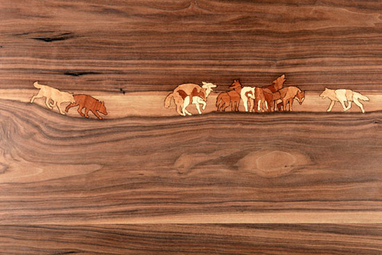 Lawson's sculptures and inlaid panels lewdly depict conflict and seduction.