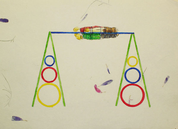 Gouache on paper, (2 gouaches 21 x 29,7 cm, 2 gouaches 42 x