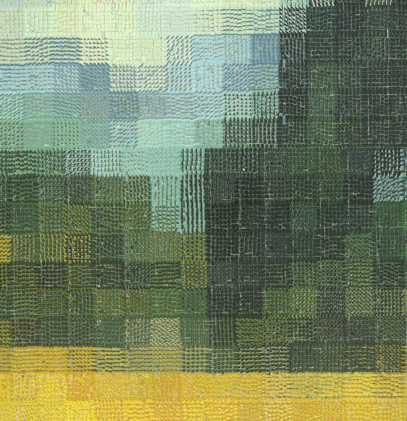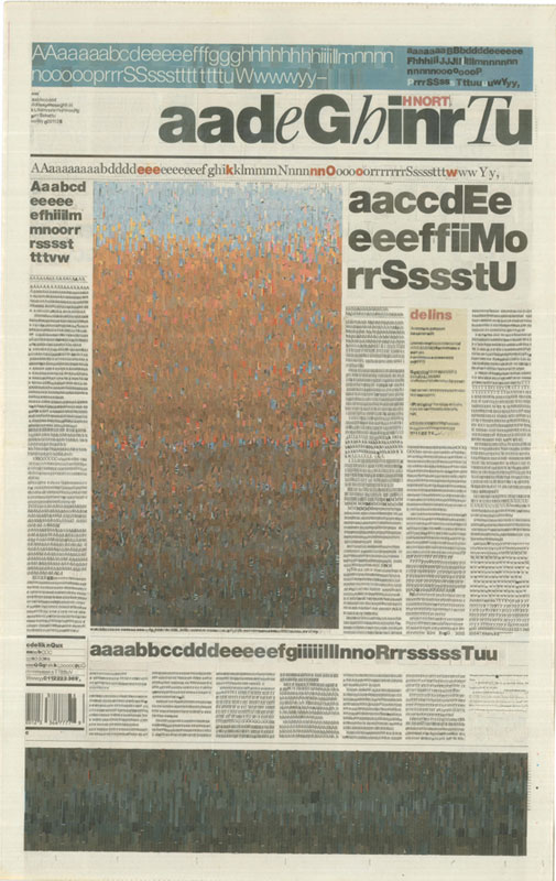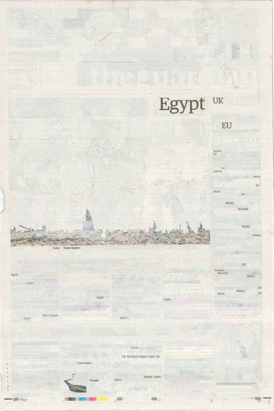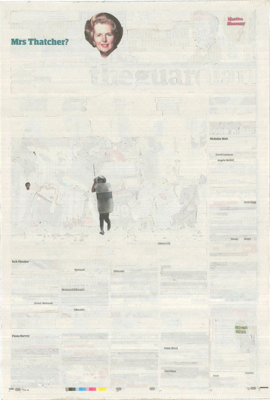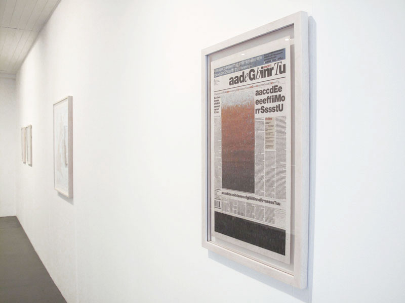 NETTIE HORN is pleased to present the second solo exhibition by British artist Kim Rugg, featuring a new body of work which is inspired by her exploration into mass produced images and icon-carriers such as newspapers, stamps, museum postcards as well as within mass media technologies including television, the internet or social networks. Reflecting on the spread of consumerism through its products and technology, Rugg questions the power of the images, their representation as well as the way they promote a certain reality. The overall definition of an artwork is defined by elements such as medium and format, which have sometimes been sacrificed when the artwork itself has been re-formated for "mass sharing" purposes. Few of us are lucky enough to travel to museums around the world to see original artworks, so we rely on catalogues or postcards to experience the works of the masters. Photographed and re-formated in order to be popularized, the art postcard conveniently reduces every artwork to fit into the same format - thus Guernica will appear to be the same size as Van Gogh's irises. Kim Rugg's postcard piece, "49 postcards" is a scaling up of the postcard back to the actual size of Van Gogh's "Wheat field with Cypresses" which can be seen at the Metropolitan Museum in New York. From this reflexion on the impact of the media, a number of questions emerge relating to the influence of this phenomenon upon reality as well as their relationship. The evolution of the photojournalistic image for example is a current interest in Rugg's practice. Camera phones have made the medium more democratic and as a result photography has come closer to the action - witnesses also become participants in history. The work "Are you sitting comfortably" presents two images sourced from the internet, depicting scenes of recent historical revolts. Although poor in quality, these pictures were rapidly propelled around the world and the impact and realism of these images are a result of the photographer's closeness to the events taking place. The high pixilation of these images inspired Rugg to transfer them into tapestries, an ancient technique previously used to depict historical events such as battles and coronations. The tapestries representing these powerful images are presented onto re-upholstered furniture in order to hint back to the domestic setting where we are more commonly used to consuming them.