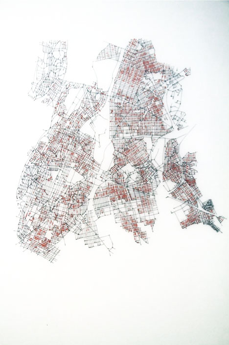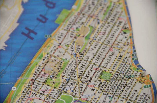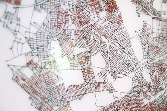 the artist, aided by the technology of Google Maps, picked out satellite disks, making the