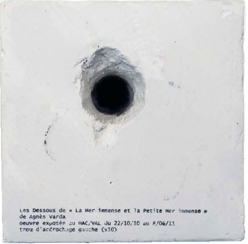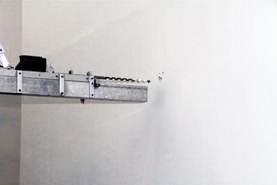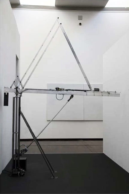 the traces left on the walls by earlier hangings. Working as a pantograph, it locates the holes in