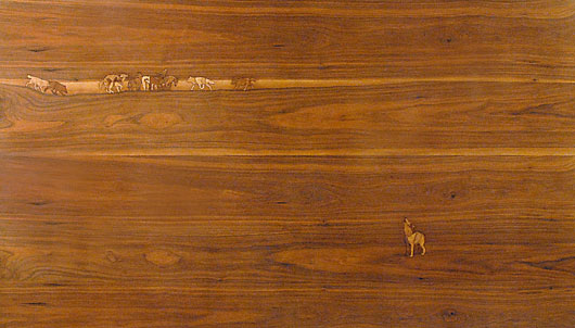 Wood veneer on panel, 243x152cm