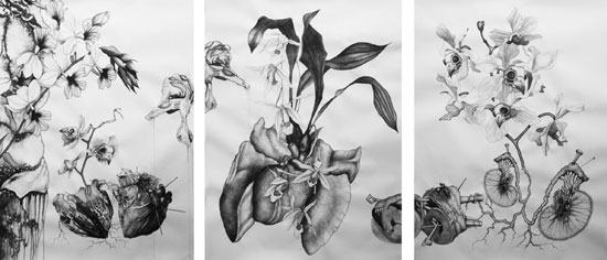 Story of Orchis in three parts, 2008 Watercolour and pen on paper, (3) x 114 x 84 cm