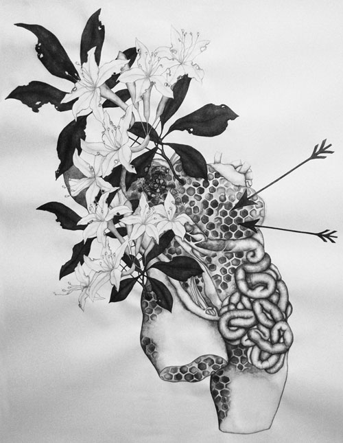Honeysuckled, 2008 Watercolour and pen on paper, 114 x 84 cm