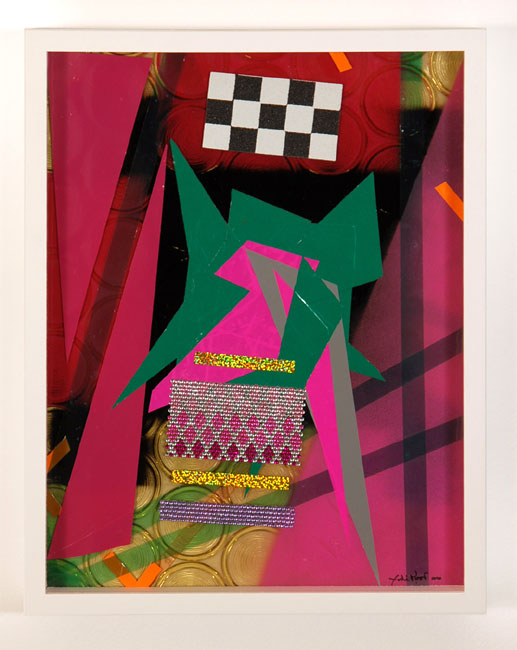 Jerusalem II, 2010 Ornamental glass, sand paper, tape, cell phone stickers, spray paint and frame 42 x 32 x 5 cm